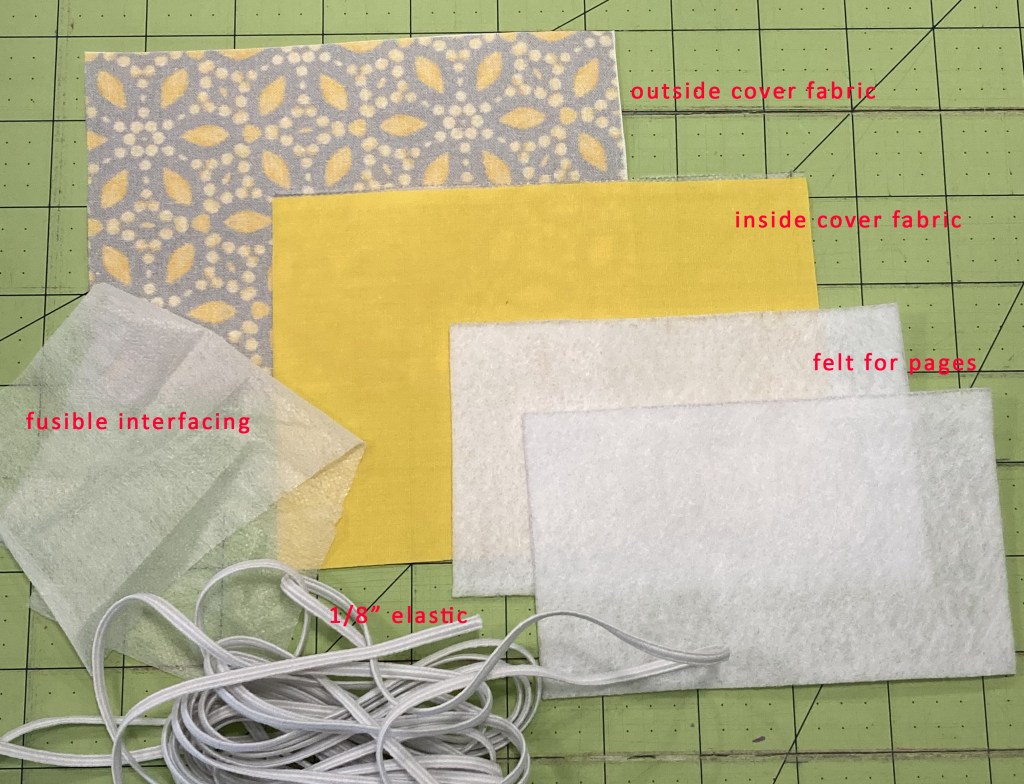- 6×4” cut of plain fabric (or a different pattern) for the inside cover