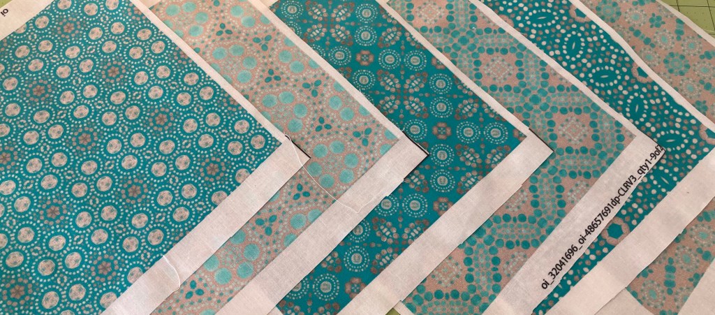 - Patterned fabric scraps (you will have 10 sections in the stripe)–I’m using swatches from my Peacock Pop collection on Spoonflower